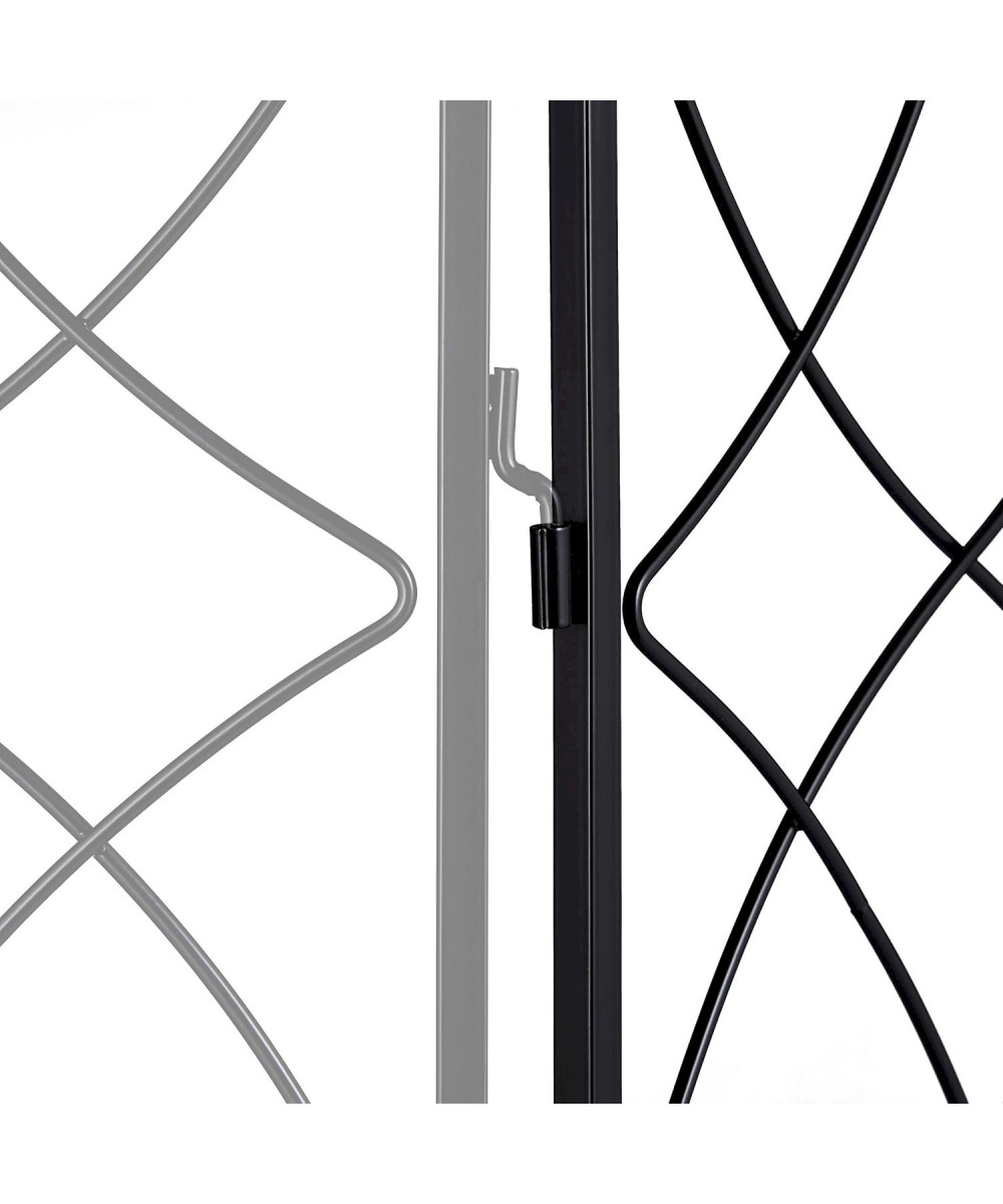 Ce treillis pour rosiers en lot de 9 offre non seulement le maintien nécessaire aux plantes grimpantes, mais contribue également à un aménagement de jardin décoratif grâce à ses formes fioritures. Les plantes grimpantes telles que le lierre, les roses, les clématites ou le vin sont mises en scène avec le treillis en métal. Choisissez vous-même si vous souhaitez placer les éléments individuellement ou ensemble. Les grilles sont simplement insérées dans le sol et peuvent être reliées entre elles par les charnières.