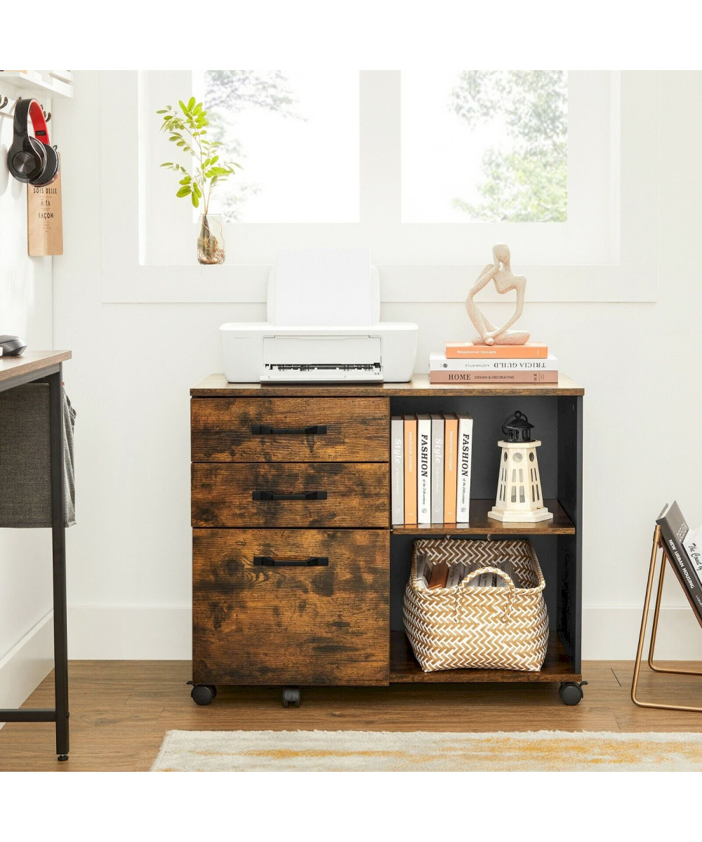 VASAGLE Caisson large roulettes Marron Rustique 40x80x66cm
