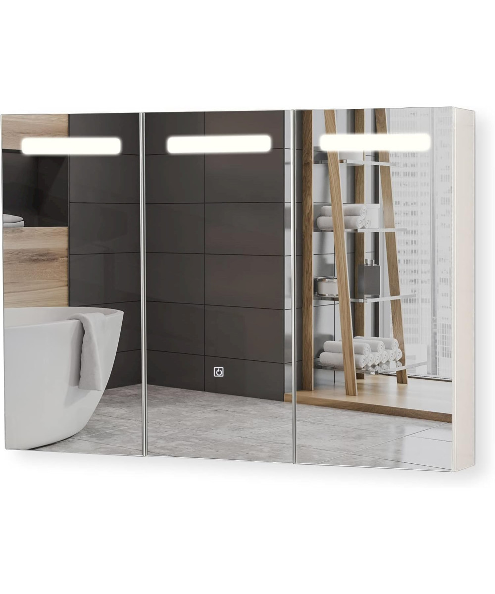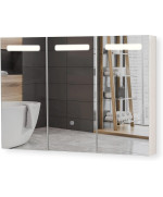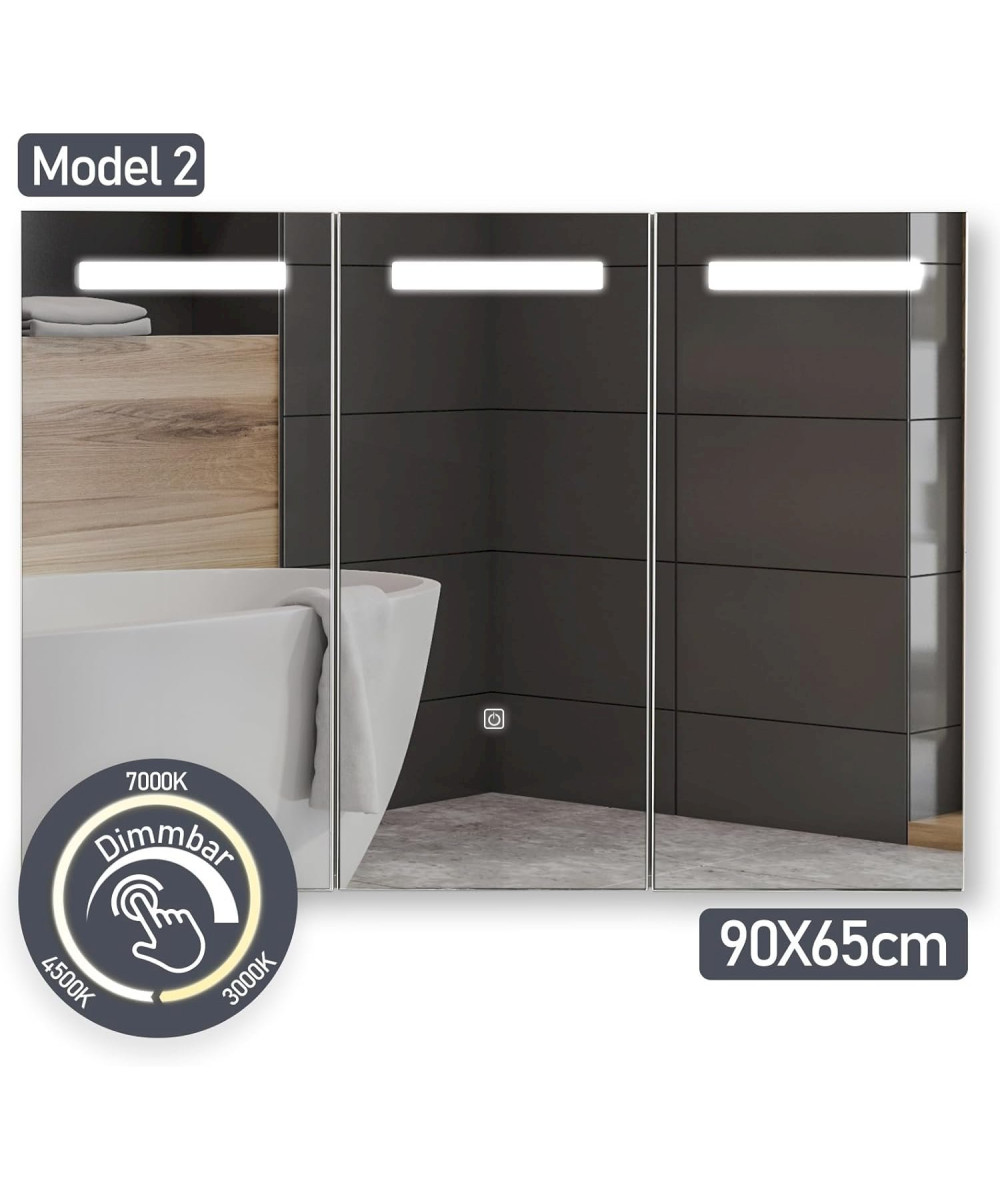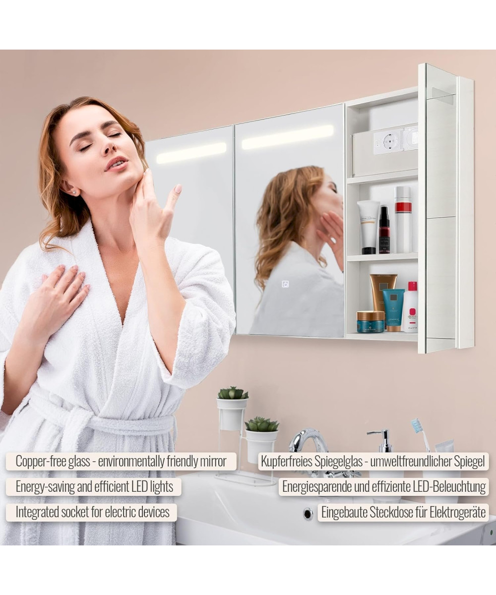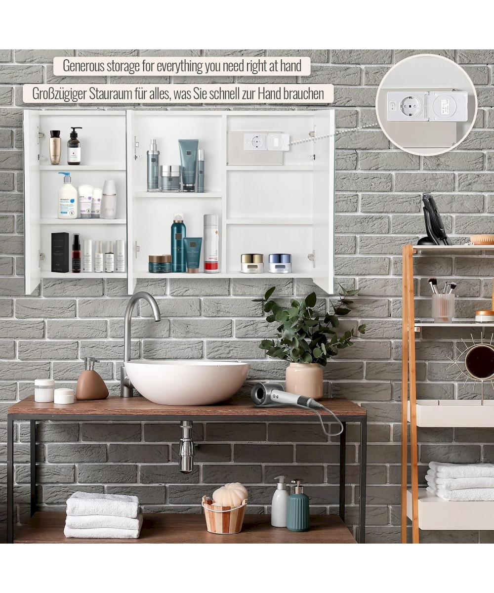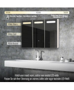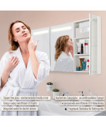 Aquamarin armoire de salle de bain 3 portes avec éclairage LED et prise pour rasoir 90x65x13cm