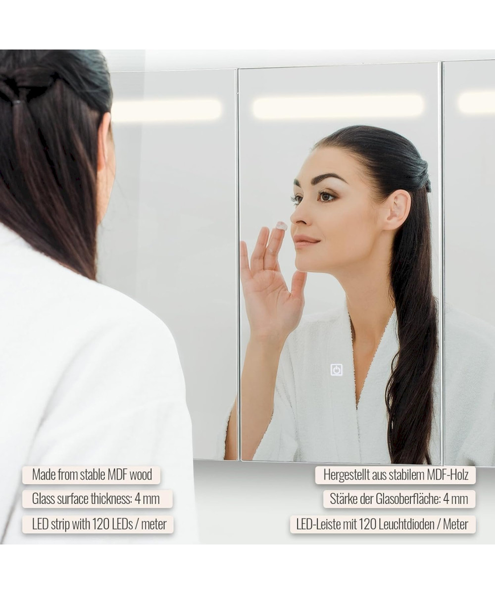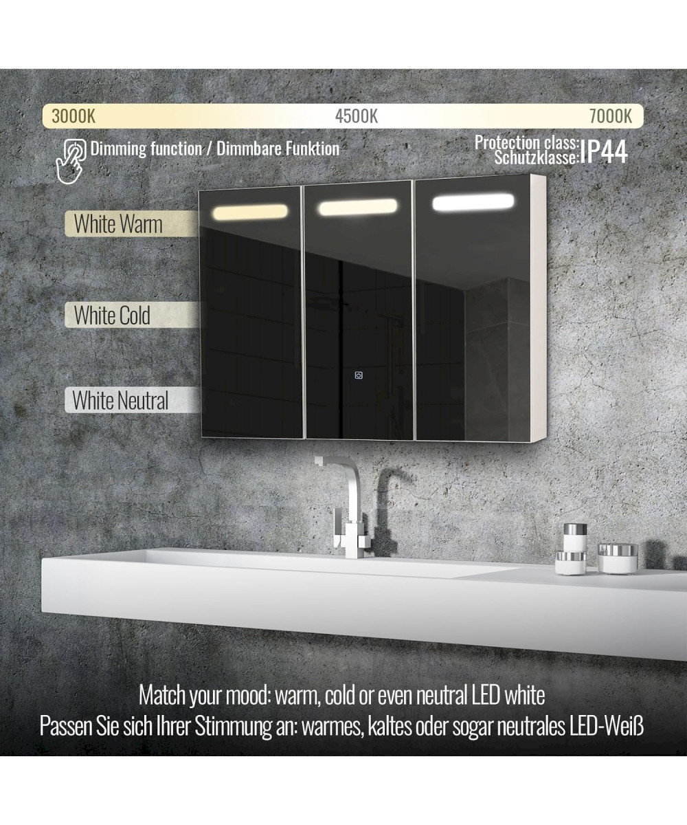 Donnez à votre salle de bains un look futuriste grâce à nos armoires de toilette avec éclairage LED, qui allient une esthétique contemporaine à une technologie innovante et une grande fonctionnalité. L'espace de rangement de cette armoire de salle de bains moderne est plus que suffisant pour tous vos accessoires de salle de bains, qu'il s'agisse de produits de soin de la peau, de maquillage ou d'hygiène.
