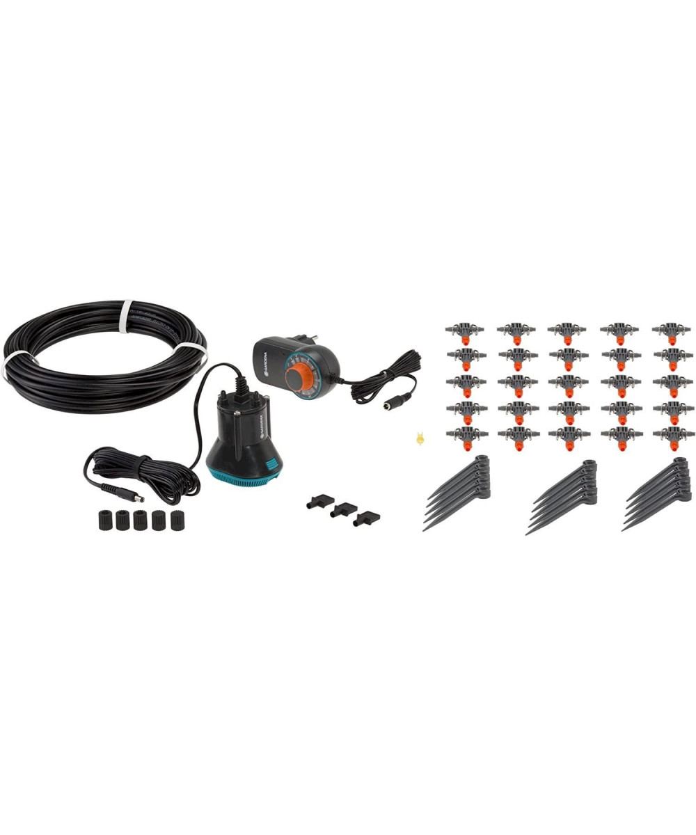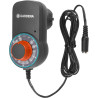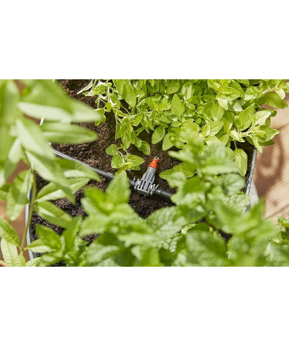 Pour arroser automatiquement les plantations des balcons et terrassesArrosage autonome sans robinet. Pour irriguer jusqu'à 5-6 m de balconnières. Transformateur avec minuterie intégrée. Choix simple du programme d'arrosage par molette. Se branche sur une prise 220/230 V. Prise pour sonde d'humidité réf.1188 ou pluviomètre électronique réf.1189. Pompe 14V basse tension puissante et sûre avec filtre intégré.