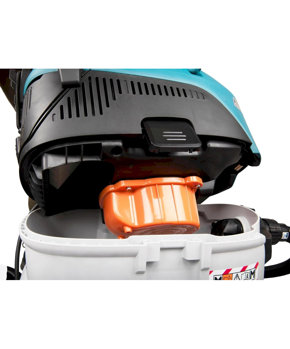 Système de décolmatage automatique du filtre toutes les 15 secondes. Le système "FlowSensor" intègre une alarme sonore et visuelle qui prévient lorsque la vitesse de l'air tombe en dessous des 20 m/s. Grande puissance d'aspiration avec une dépression de 250 mbar et un débit d'air de 4,5 m3/min. La puissance connectée totale max. est de 2300 W.