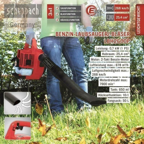Scheppach - Souffleur 3 en 1 thermique 2 temps 25,4 cm3 268 km/h - LBH2600P