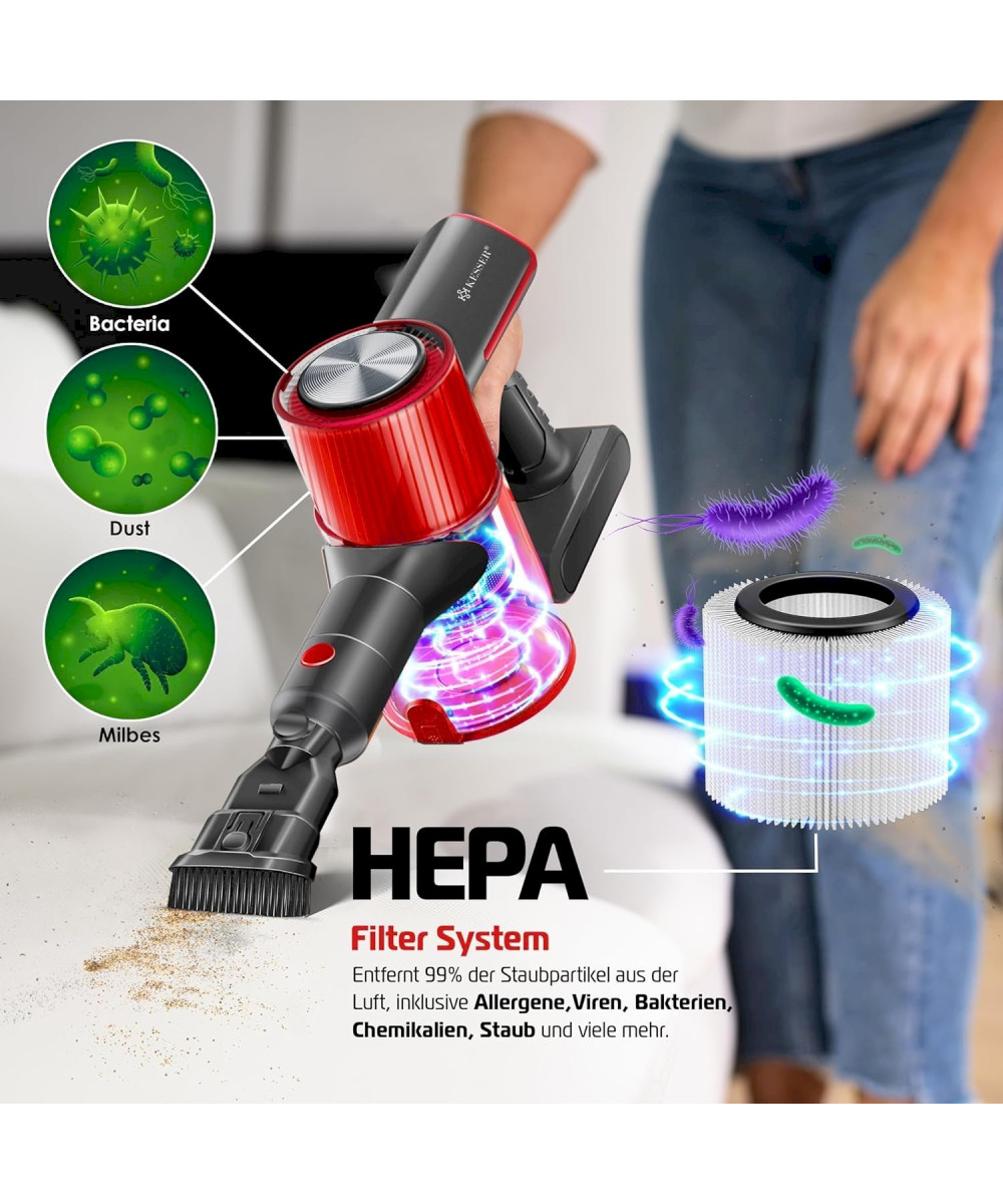 KESSER Aspirateur sans fil 3 en 1 avec filtre HEPA - Aspirateur à main sans sac rouge