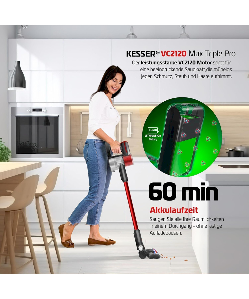 Avec l'aspirateur à main 3 en 1 VC2120 Triple Max de KESSER, vous vivez une révolution en matière de propreté et d'efficacité. Cet aspirateur à main polyvalent combine trois fonctions dans un appareil compact et puissant qui s'intègre sans peine dans votre ménage. Commençons par son design séduisant, qui n'est pas seulement esthétique, mais qui promet aussi une grande fonctionnalité.