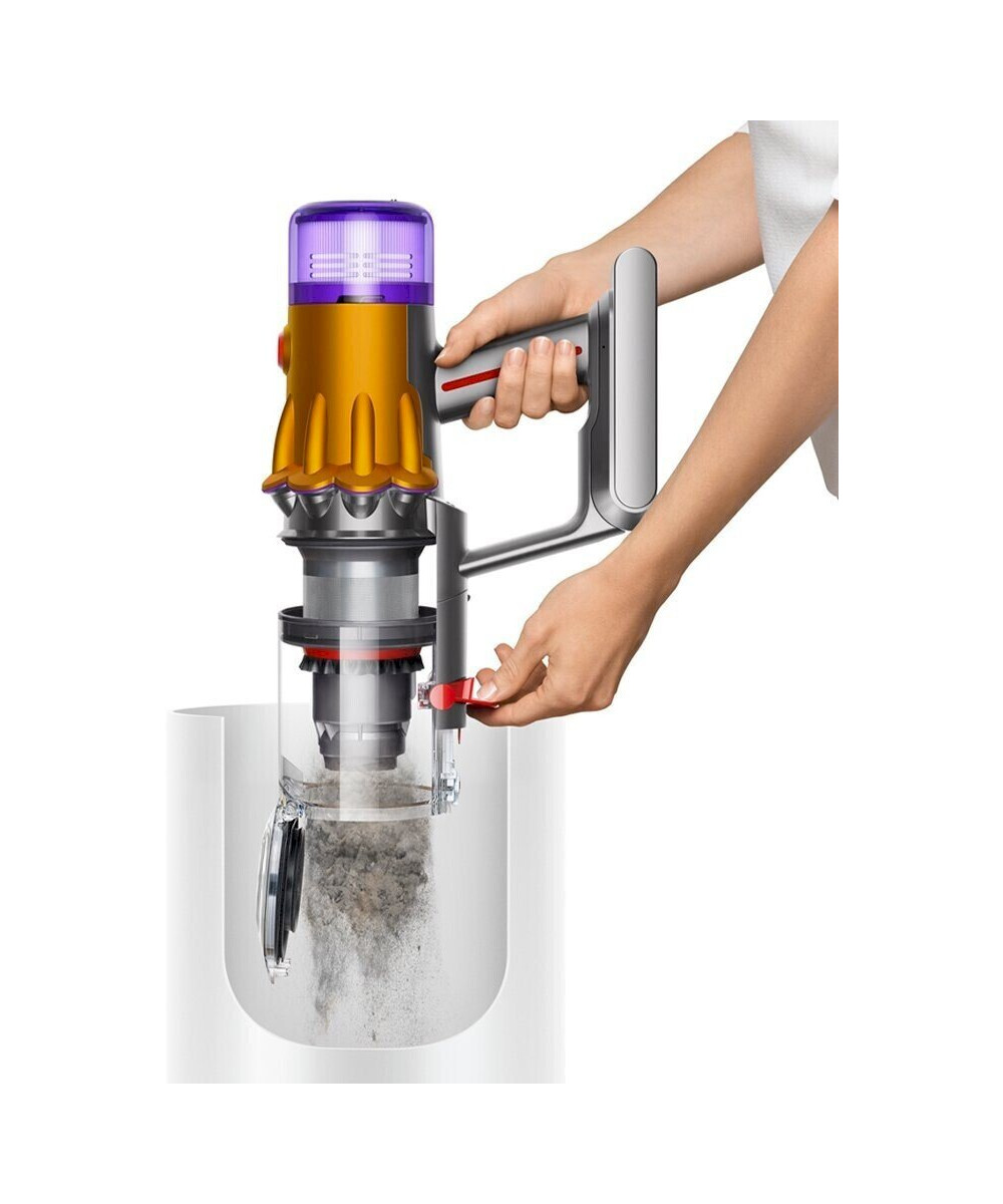 En un seul geste, la poussière et les saletés du Dyson V12™ sont évacuées de manière hygiénique dans la poubelle.