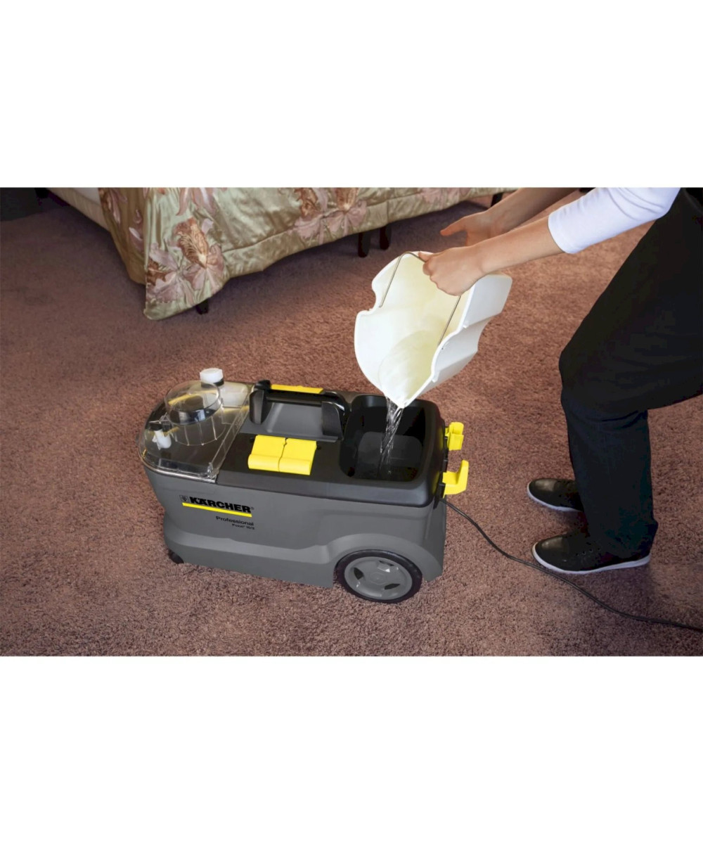 Compact et maniable, l'injecteur-extracteur Puzzi 10/2 Adv est idéal pour le nettoyage professionnel des textiles, moquettes...