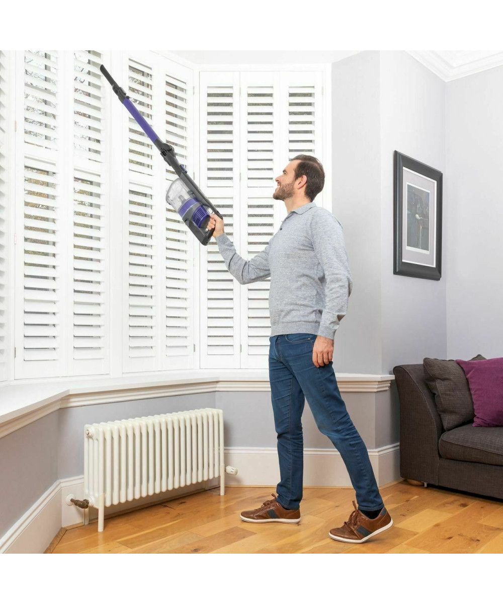 Aspirez facilement dans les coins et sous les meubles grâce à son système de tête pivotante et à la finesse de son design. Lorsque vous avez fini, le bac à poussière s’ouvre d’une simple pression sur un bouton pour le vider en toute simplicité.