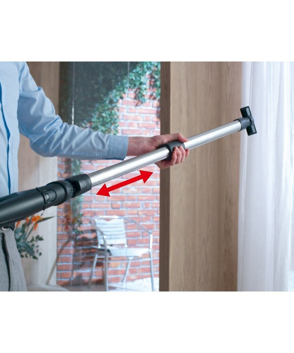 Doté du design exclusif de Miele, le tube télescopique Comfort s'ajuste de manière intuitive selon la hauteur d'utilisation souhaitée avant de se verrouiller. Grâce à son diamètre étendu, il permet d'augmenter le volume du débit d'air et favorise ainsi des résultats de nettoyage exceptionnels. Les petits détails, comme le revêtement en caoutchouc sur l'extrémité supérieure, se révèlent incroyablement pratique. Si le tube est appuyé contre le mur, il ne glisse pas. - ComfortCable