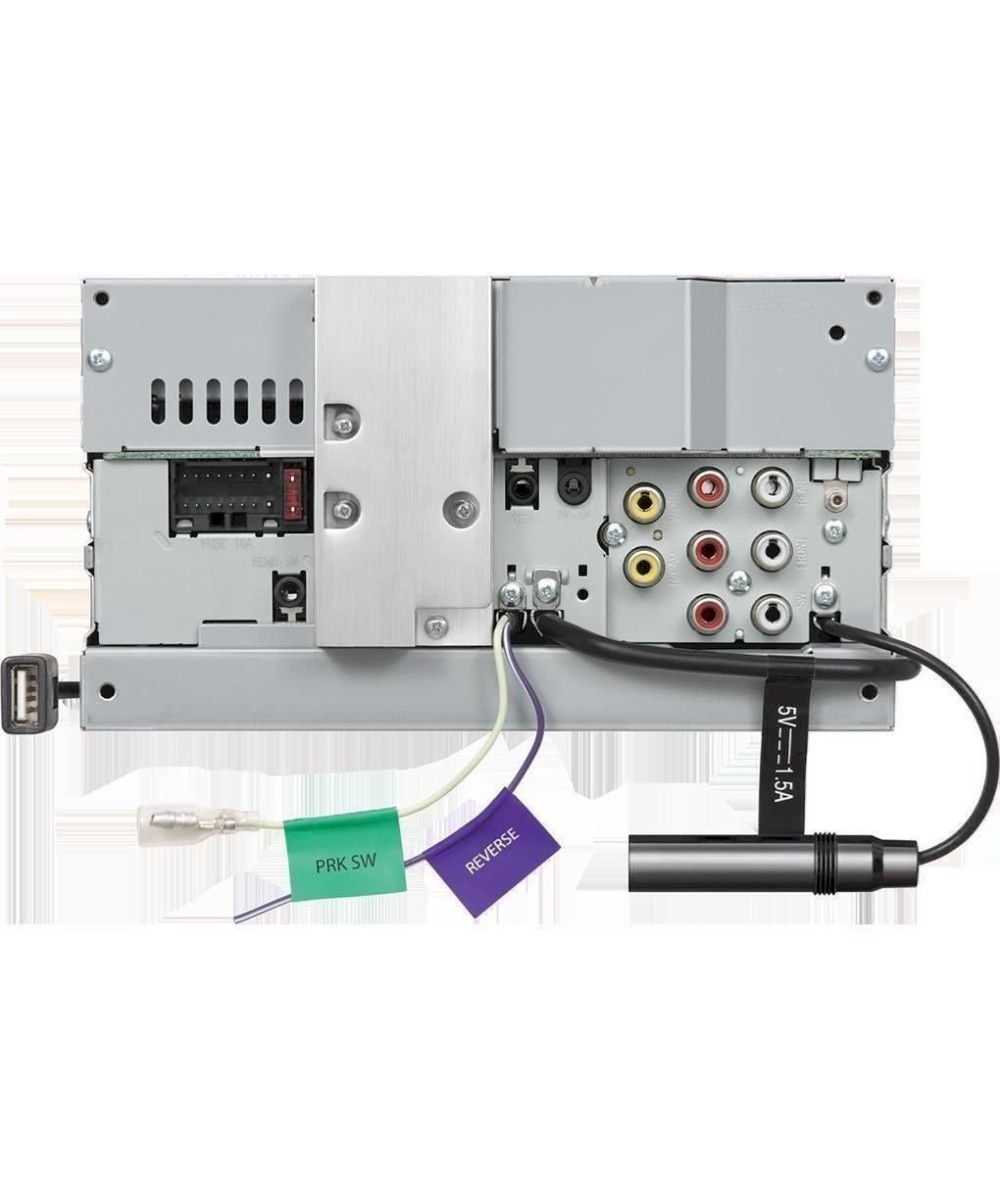 - Connectique USB, Sortie préampli, Aux-In, Sortie Cinch AV, Entrée Cinch AV, Commande au volant, Caméra de recul