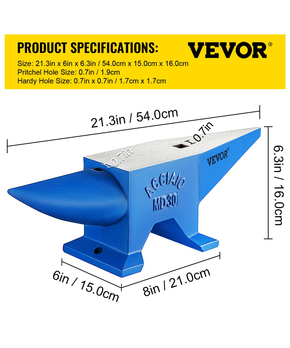 Grande Zone de Travail: Cette enclume de forge de 30 kg / 66 livres est dotée d'une surface de travail confortable et large de 11,7 cm (4-5/8 po), offrant une grande zone de travail. La large table de travail et la surface plane offrent une meilleure expérience utilisateur. Elle peut également supporter un long temps de frappe.
