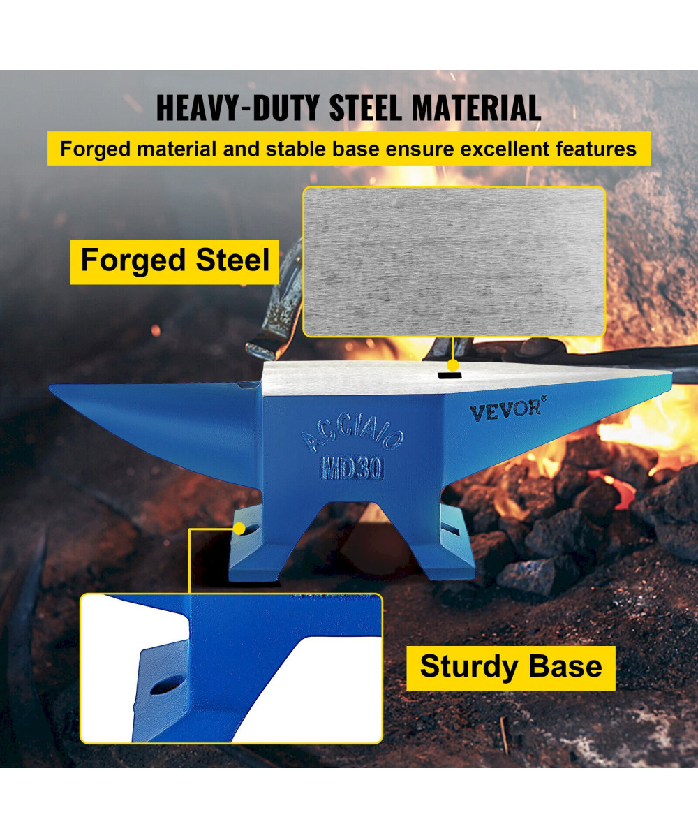 Matériau de Haute Qualité 30 kg: Cette enclume en acier est fabriquée à partir d'un acier de haute qualité forgé au trempé, qui présente une dureté, une résistance et une durabilité élevées. Notre enclume en acier pour forgeron a un matériau d'excellente qualité de plus de 50 HRC. Sa base solide lui confère également une grande solidité.