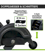 - Zentrale 3-fache Schnitttiefeneinstellung -15/-25/-38mm