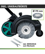 - Im Lieferumfang enthalten ist eine Nylon Unkrautbürste
