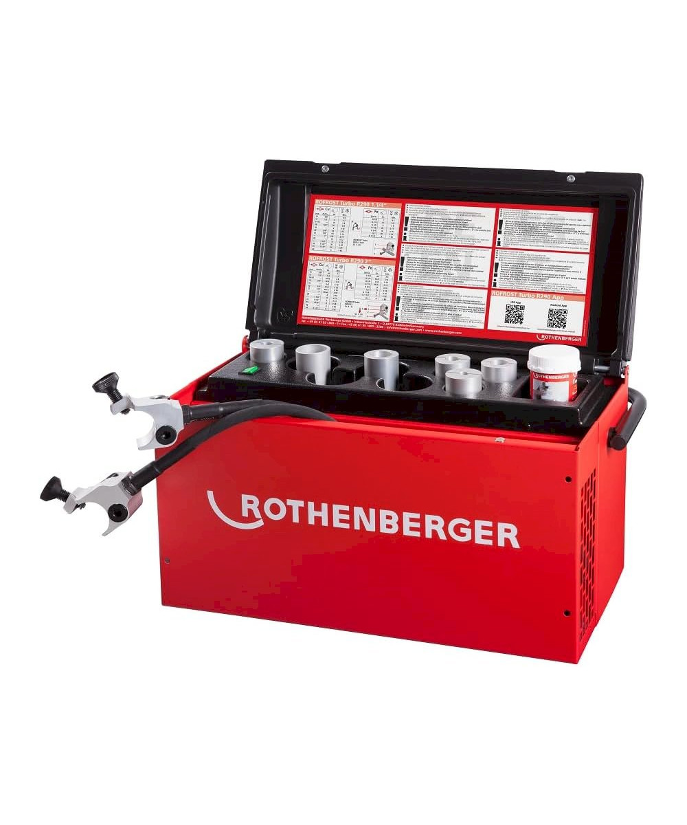 - 1x Rothenberger ROFROST Turbo R290 Rohreinfriergerät mit zwei Kälteschläuchen - 6x Reduziereinsätze - 1x Wärmeleitpaste - 1x Bedienungsanleitung