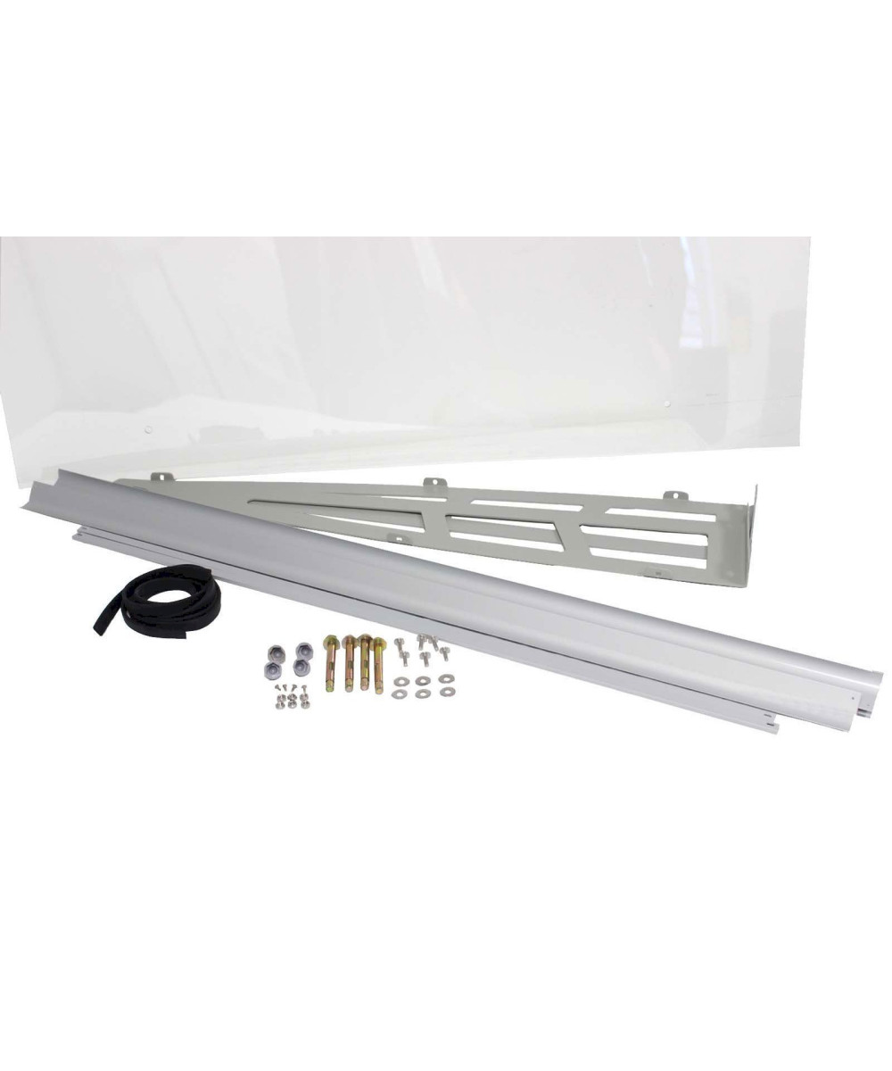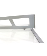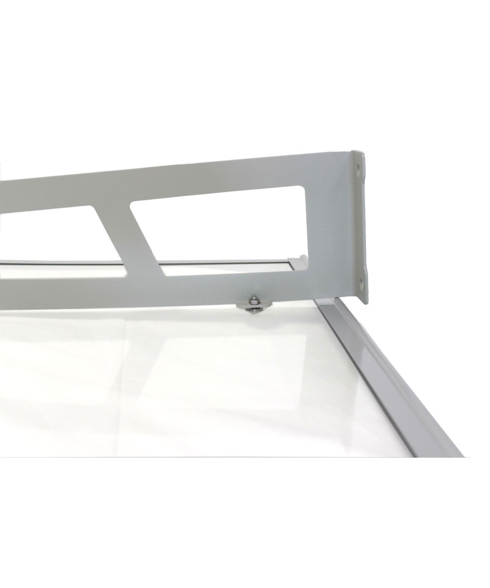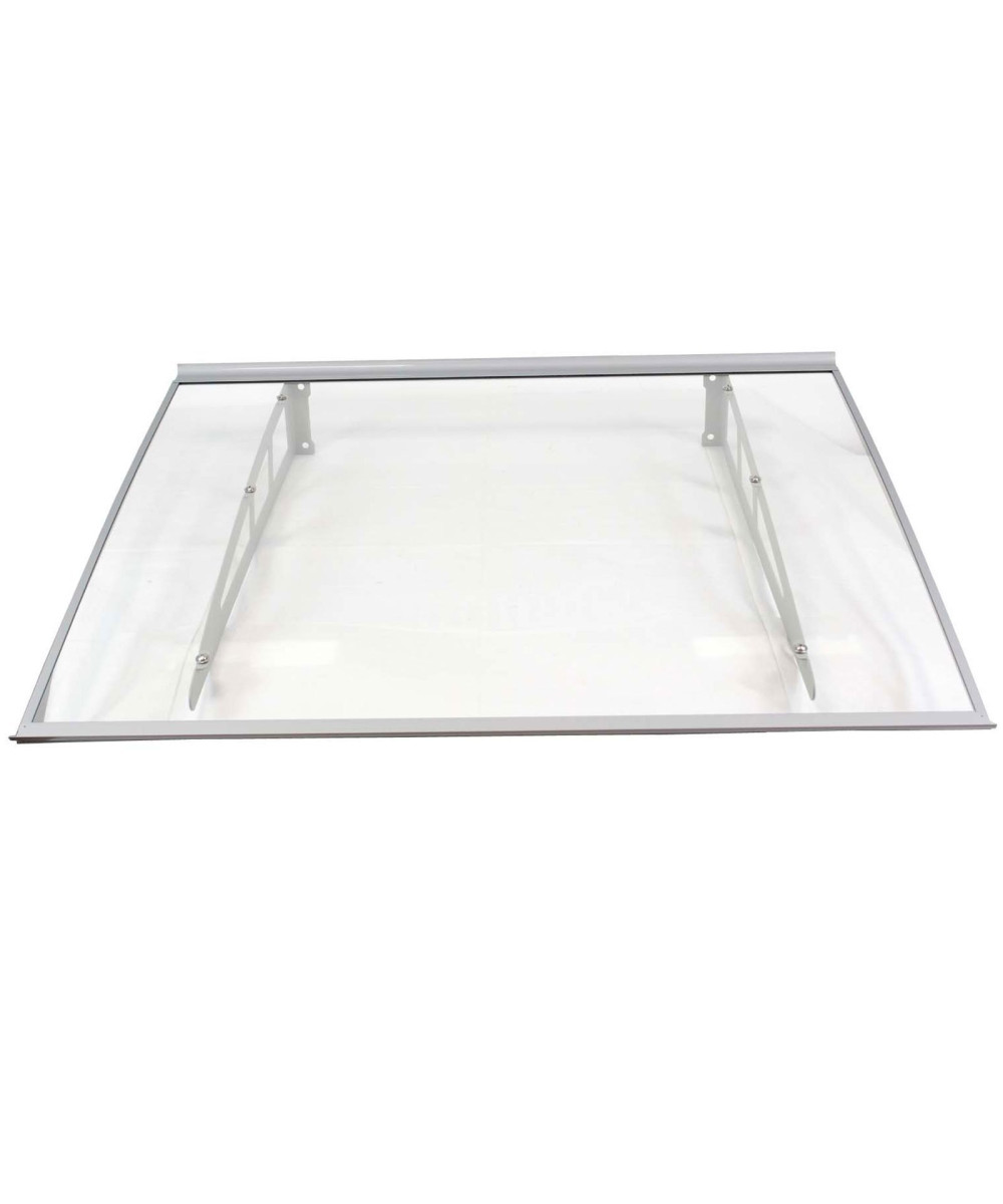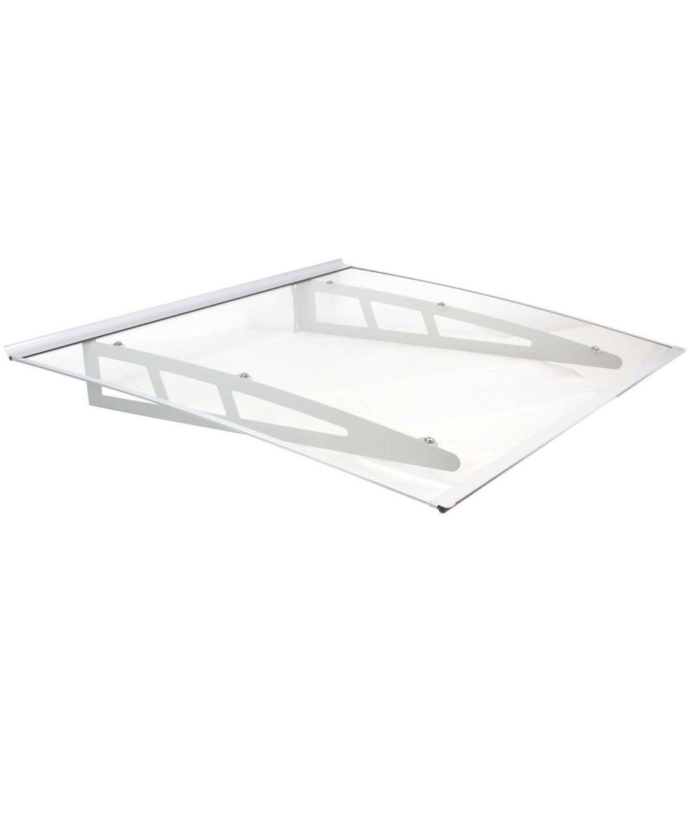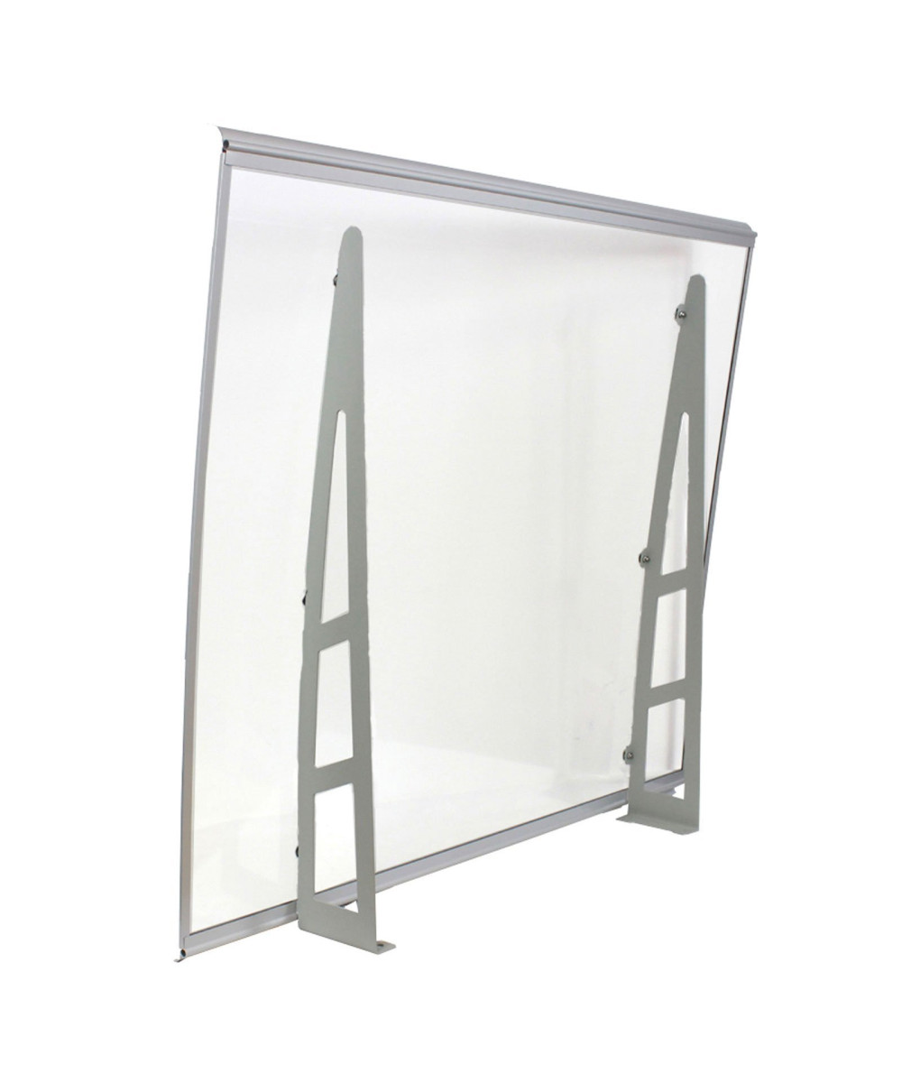 Das universell einsetzbare Vordach besteht aus einer ca. 3mm dicken Polycarbonatplatte, zwei Trägern aus beschichtetem Stahl und einem hochwertigen Kantenschutz aus Aluminium. Es ist damit stoßfest, wasserfest, hitzebeständig, schlagfest, rostfrei und sorgt durch seine Pultbogen-Form für ein problemloses Ablaufen von Regenwasser.