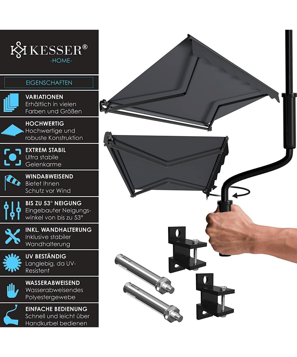 KESSER store banne à bras articulé 250x200cm anthracite avec support mural
