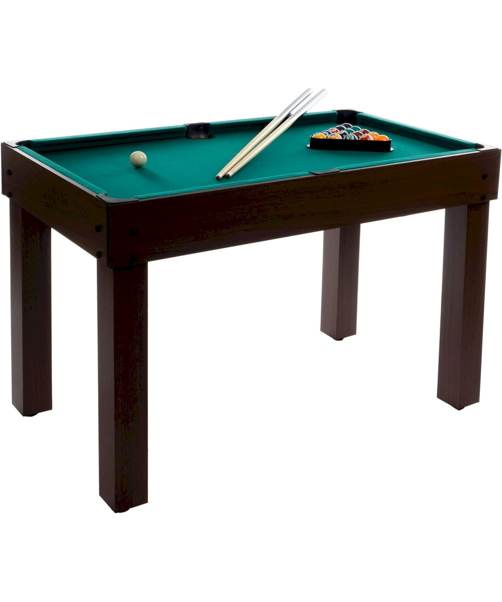 Table de billard avec revêtement en tissu vert classique avec 1 jeu de boules de billard, 2 queues, 2 craies, brosse et triangle. -