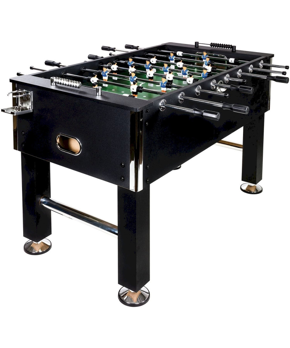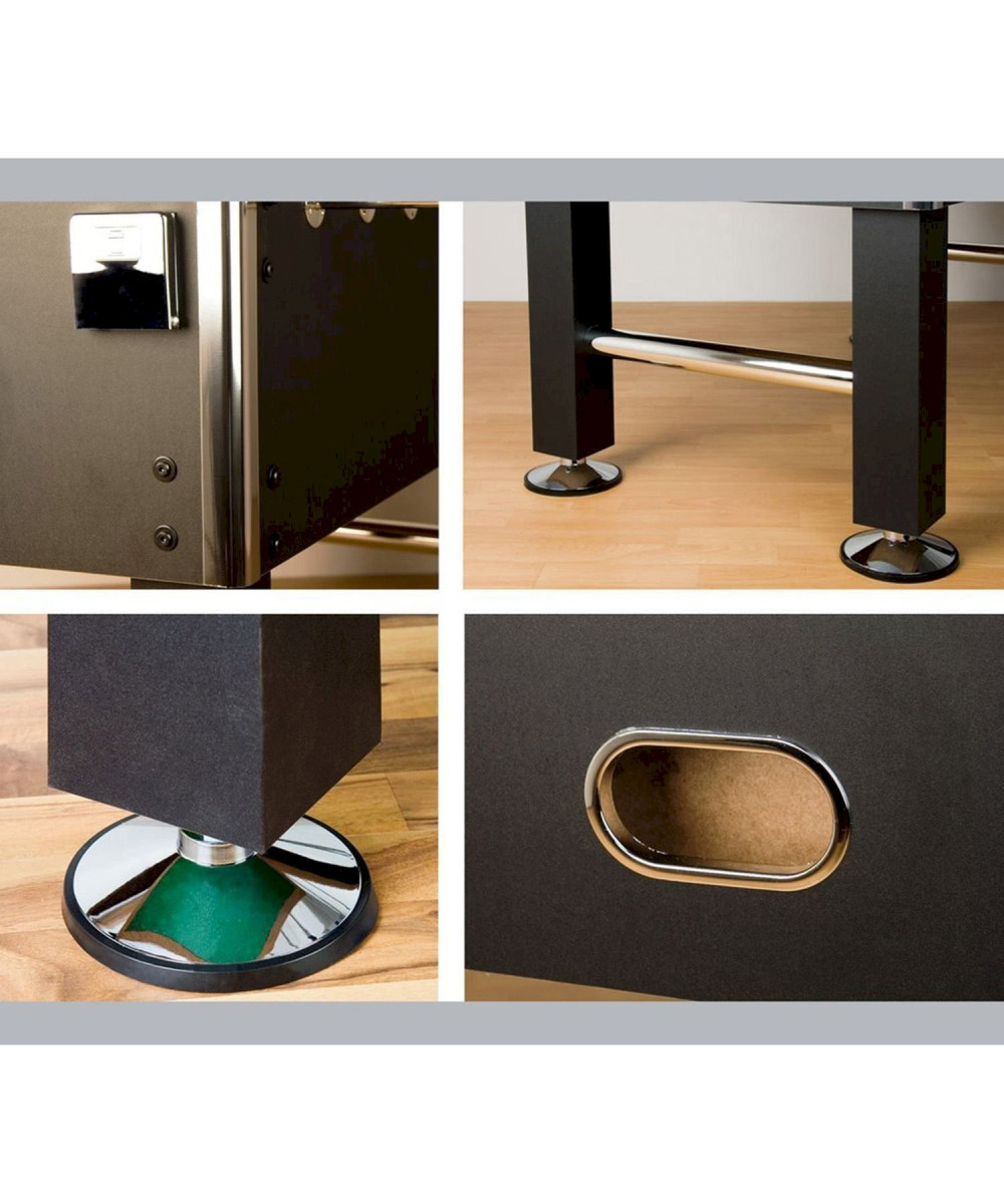 Le Baby-Foot Tuniro modèle "Leeds" est d'un très bon rapport qualité prix. Doté d'une conception en MDF massive, de pied avec renforts métalliques et d'un poids total de 60kg, ce Baby-Foot possède une bonne stabilité. Grâce aux pieds en caoutchouc, le sol est protégé. Ces pieds sont réglables en hauteur pour s'ajuster à votre sol. Les bords arrondis apportent une protection supplémentaire lors de son utilisation. Les protections chromées apportent d'ailleurs une touche brillante pour votre intérieur. Les dimensions du terrain correspondent à la norme habituellement utilisée lors des tournois.