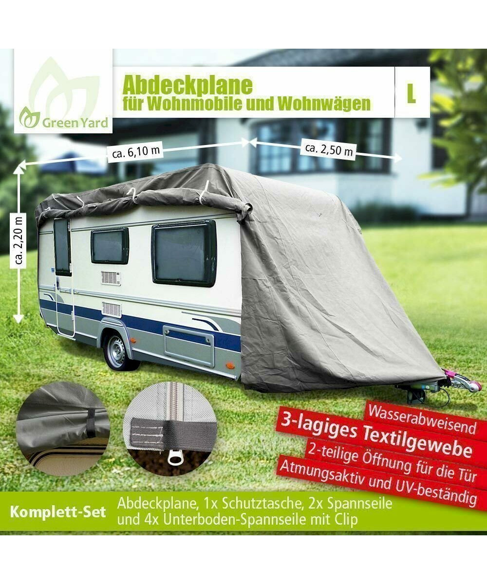 Green Yard Bâche pour Caravane ou Caravane, 610 x 250 x 220 cm, Gris, L