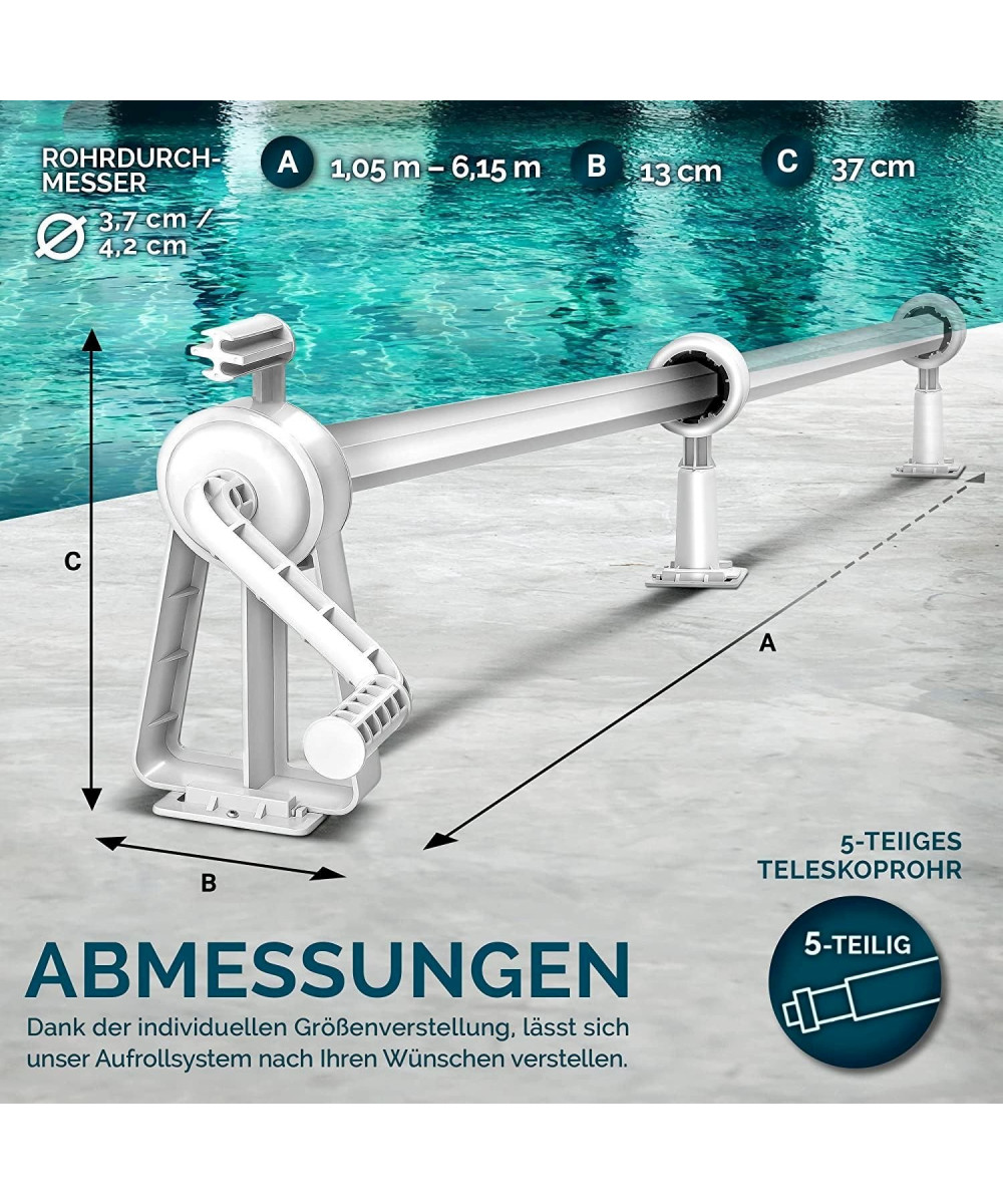 tillvex Dérouleur pour piscine 1,05 - 6,15 m - Système d'enroulage pour bâche solaire