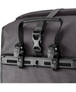 L'organisateur à l'intérieur permet un rangement ordonné de vos affaires. Et lorsque vous n'êtes pas à vélo, vous pouvez transporter la Back-Roller Plus confortablement avec la sangle de transport à l'épaule.