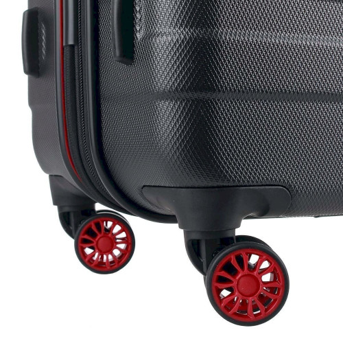 Travelite Vector Trolley mit 4 leichtgängigen Rollen, 360° drehbar, für eine bequeme Handhabung mit robusten Außenschalen.