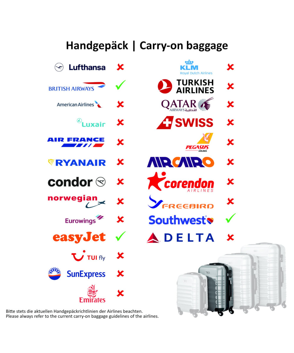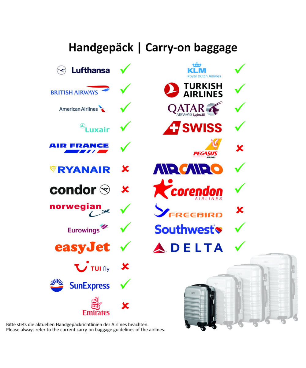 Ein 3-stelliges Zahlenschloss gewährleistet, dass Ihr Gepäck sicher verschlossen ist und nur von Ihnen geöffnet werden kann. Das TSA-Schloss ermöglicht problemloses Reisen in die verschiedensten Länder, wie beispielsweise die USA, da es den Sicherheitsstandards der Transportation Security Administration entspricht. Darüber hinaus ist die kratz-, stoß- und strapazierresistente Oberfläche ein Garant dafür, dass das Gepäck unbeschadet an sein Ziel gelangt.
