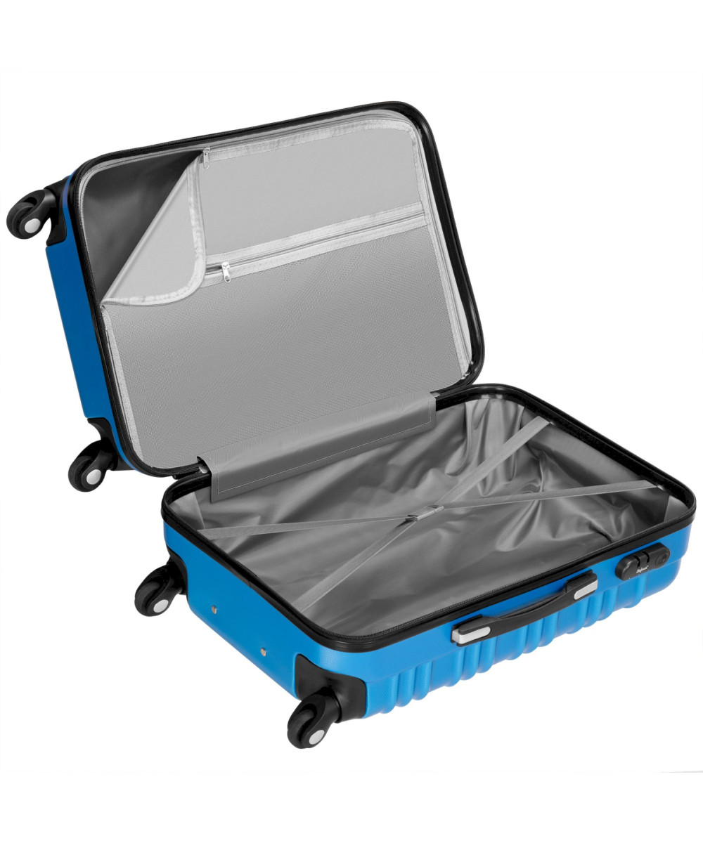 Das Travel Koffer Set besteht aus widerstandsfähigem Material. Die Kofferhülle ist aus ABS und der Teleskopgriff aus Aluminium gefertigt. Diese Materialien machen den Trolley nicht nur leicht, sondern auch äußerst robust und stoßfest. So kann man sicher sein, dass das Gepäck gut geschützt ist. Die zwei separaten Fächer im Inneren, ausgestattet mit Trennwänden und einem Packgurt, sorgen dafür, dass Ihr Reisegepäck gut organisiert und sicher verstaut ist.