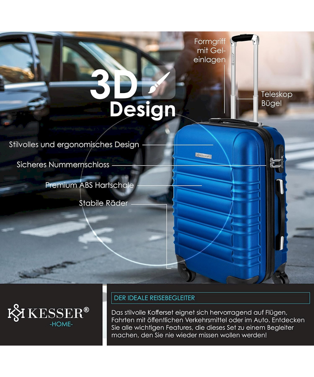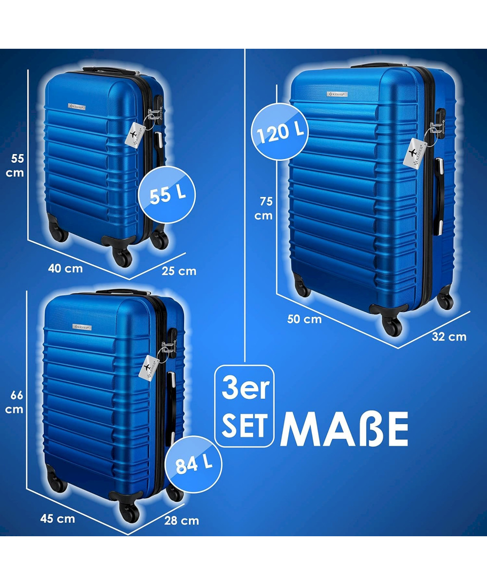 Set de 3 valises à coque dure M-L-XL trolley de voyage bleu