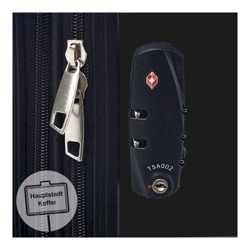 Serrure TSA à combinaison (pas de clef). Information IMPORTANTE pour les voyages aux Etats-Unis : la valise peut être ouverte et fermée sans être forcée par les agents de sécurité de l’aéroport.