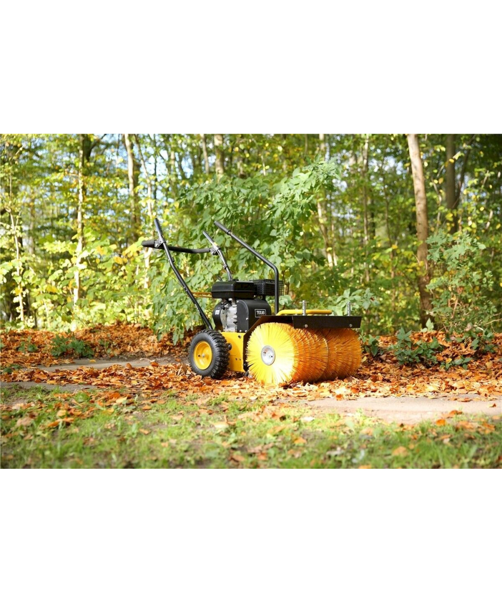 Balayeuse moteur essence puissante 4000W Texas 650TGE à brosse rotative équipée d'un démarrage électrique. • Efficace pour nettoyer la saleté, la crasse, balayer les feuilles et brindilles, déneiger jusqu'à 20 cm de neige en profondeur et 60cm de largeur.