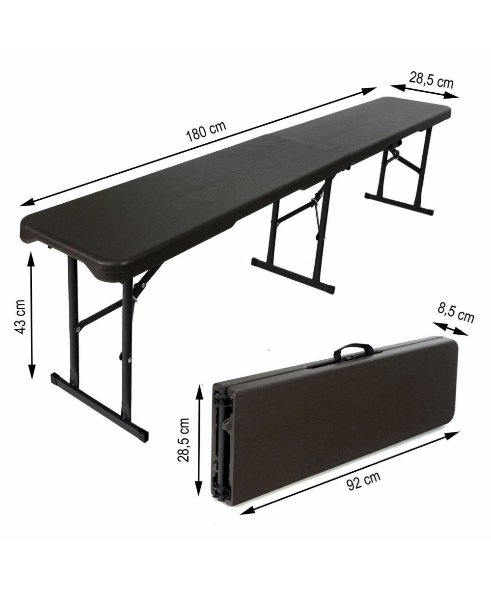 Le banc peut être plié au milieu et peut être facilement et commodément transporté avec les poignées intégrées. Le banc