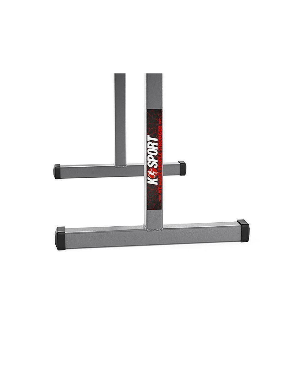 Die Polsterung der Bank besteht aus abriebresistenten Materialien und die Profile sind pulverbeschichtet – wählen Sie die Marke K-SPORT, wenn Sie ein solides Trainingsgerät für viele Trainingseinheiten haben möchten.