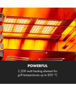 L'élément chauffant infrarouge du barbecue à haute température Hannibal de Klarstein, doté d'une puissance de 2200 watts, diffuse une chaleur rayonnante particulièrement intense aux plats situés en dessous. Vous pouvez faire griller des steaks à la perfection sur les grilles en acier inoxydable : grâce au système intégré CharForce System avec une température maximale de 850 °C et différentes possibilités de réglage en hauteur, votre viande sera agréablement croustillante à l'extérieur et tendre à l'intérieur, des conditions optimales pour un résultat unique!