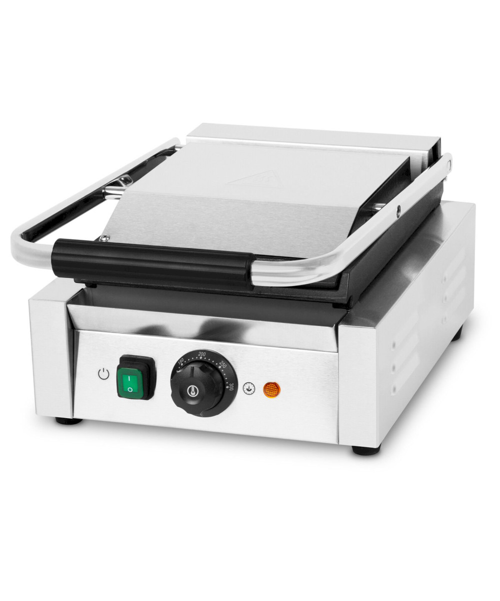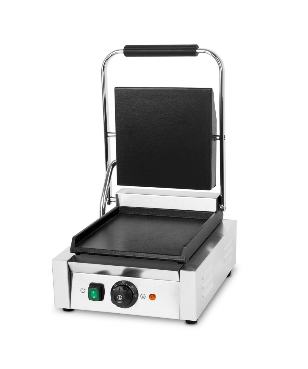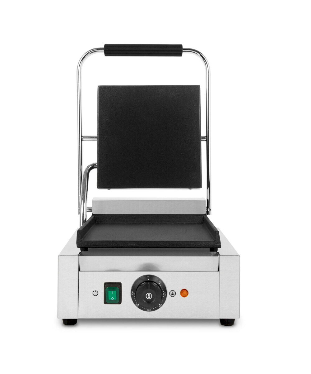 ROBUSTE ET DURABLE: le gril de contact de Vertes est un appareil professionnel pour la gastronomie avec une puissance de 1800 watts. Pour résister aux contraintes de l'utilisation professionnelle, le gril de contact dispose de plaques de cuisson en fonte et d'un boîtier en acier inoxydable.