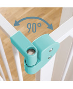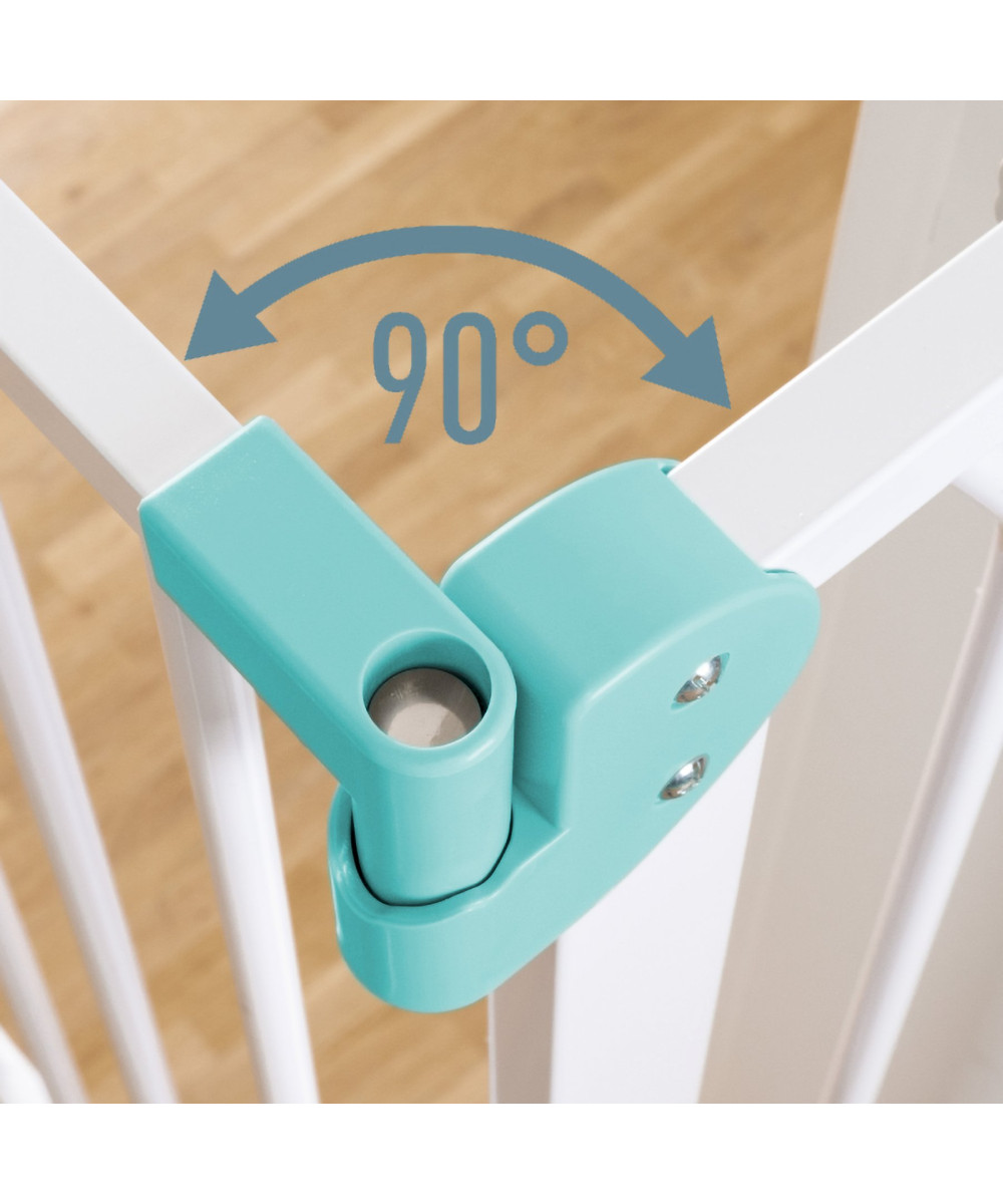 La barrière de sécurité enfant Berrin a une fonction de fermeture automatique. Cela signifie que la barrière se referme de manière sûre et fiable après le passage. La barrière Berrin peut être ouverte d'une seule main par un adulte, ce qui vous permet d'avoir toujours une main libre pour votre enfant. Le mécanisme d'arrêt à 90° permet de bloquer la porte à 90° pour passer confortablement. - Montage facile