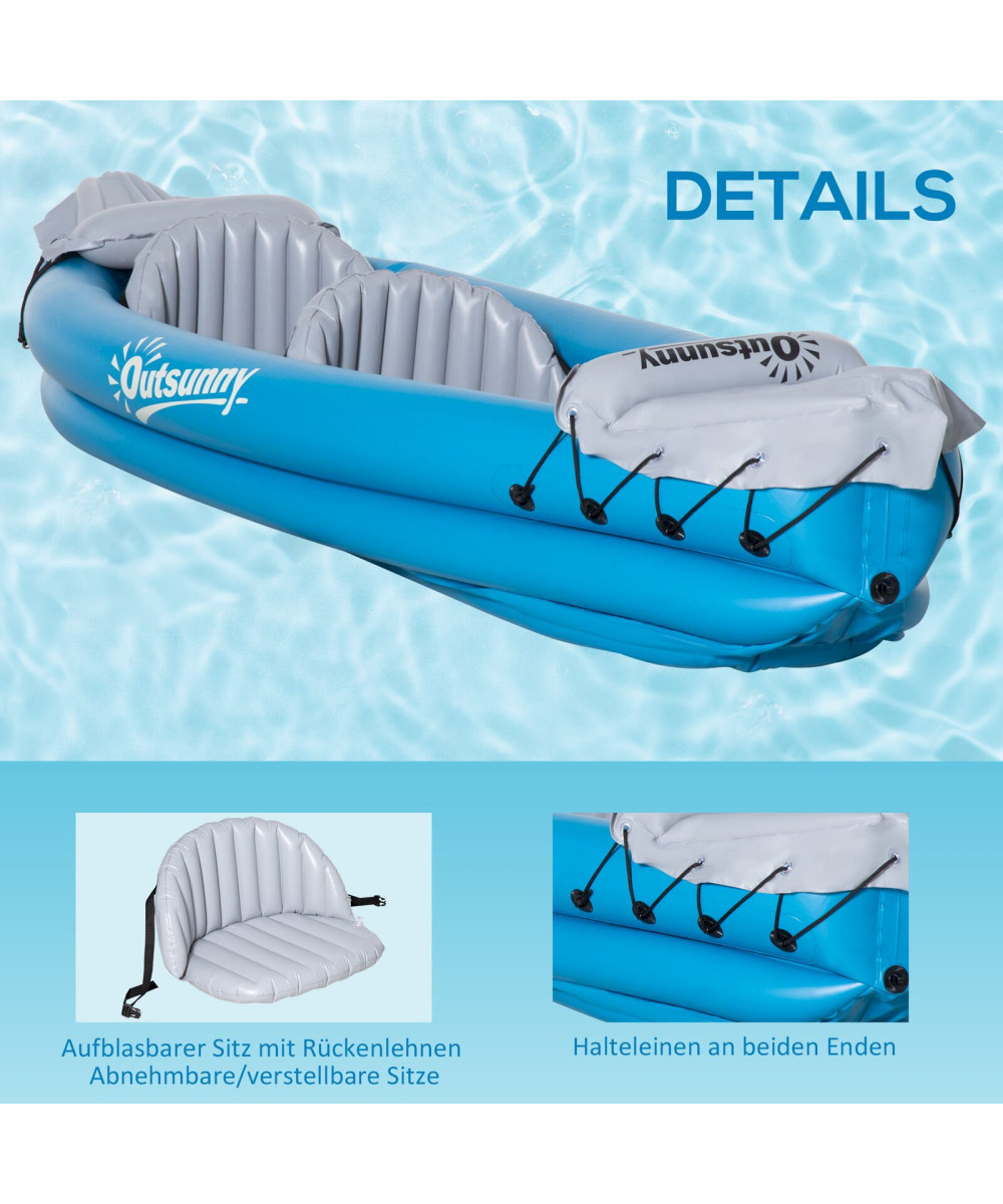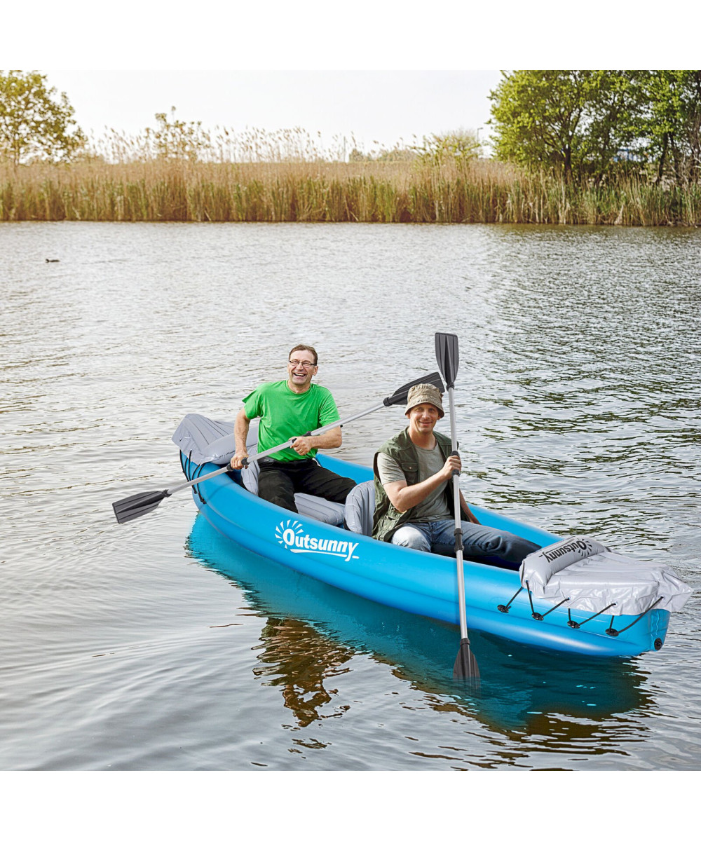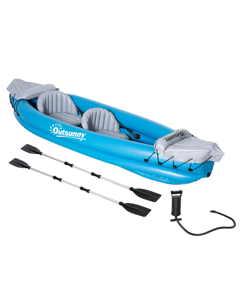 Outsunny Kayak gonflable pour 2 personnes avec pompe à air bleu gris