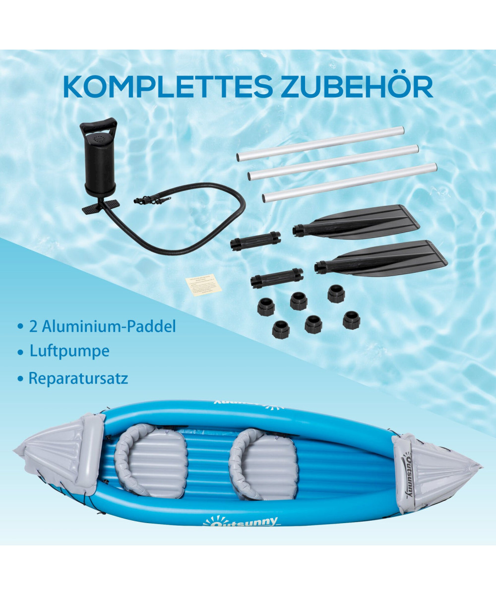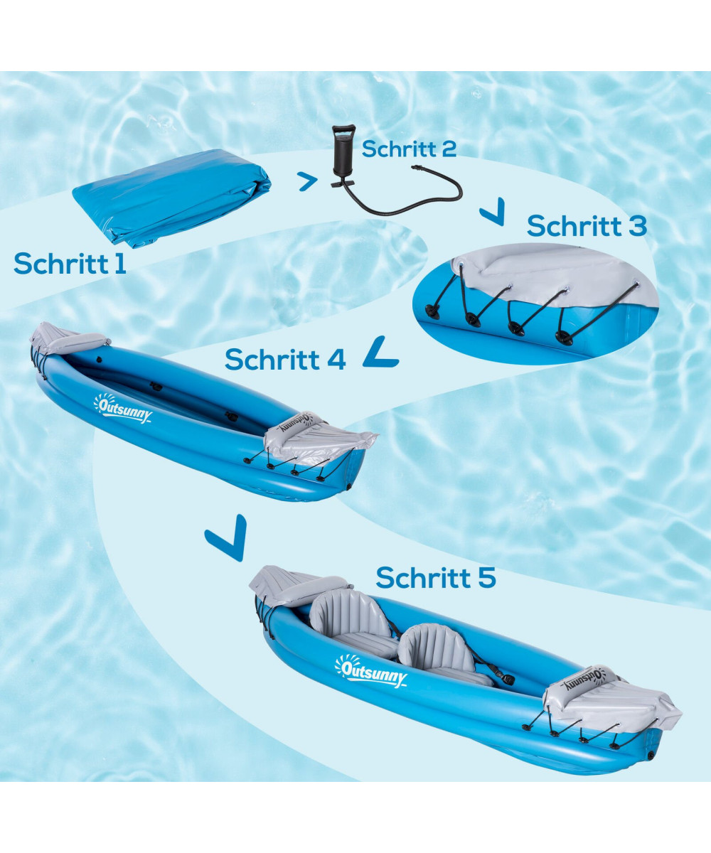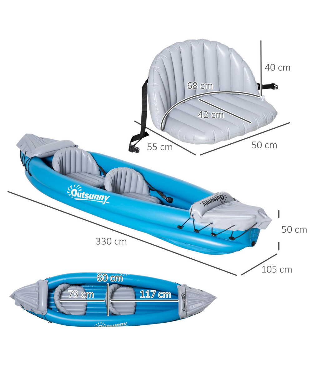 Outsunny Kayak gonflable pour 2 personnes avec pompe à air bleu gris