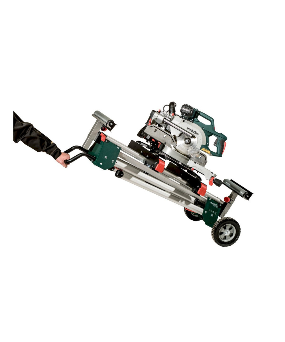 - Socle pour scie à onglets léger et robuste avec fonction Trolley pour l'utilisation mobile avec scie montée