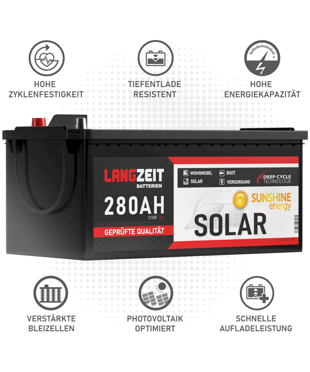 Langzeit Solarbatterie 280Ah 12V Batterie für Solar Wohnwagen Wohnmobil Caravan Camping