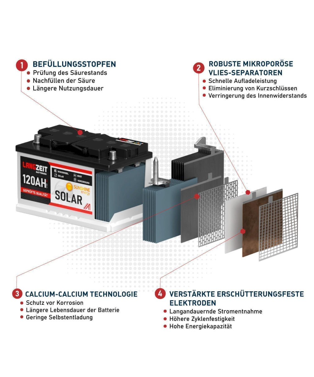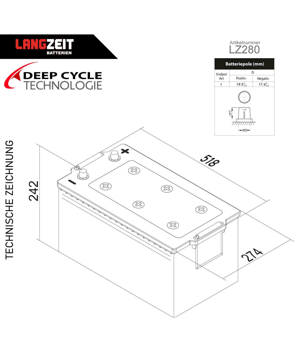 Durch das sehr gute Preis-Leistungs-Verhältnis rechnet sich diese LANGZEIT Batterie auch in wirtschaftlicher Hinsicht. Zyklus/Euro.
