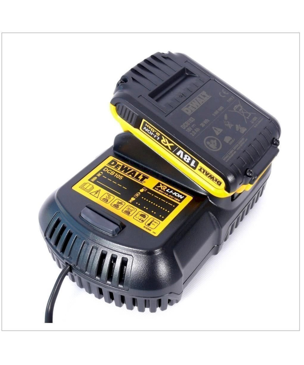 - Kit batteries et chargeur qui comprend: 2 x 2.0Ah XR 18V batterie et un chargeur DCB105 multi-voltage charger.