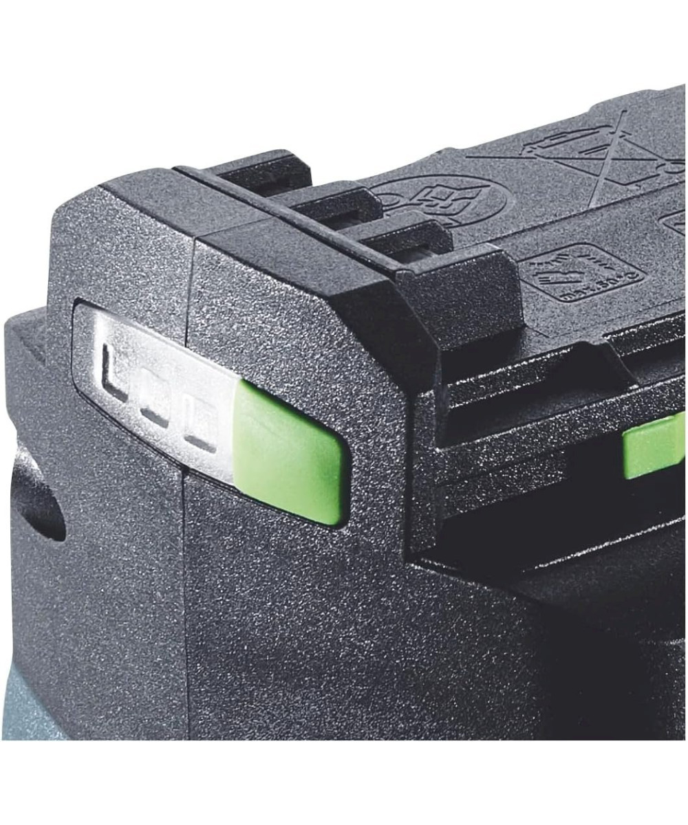 Conçue pour l'ensemble des applications et machines de la gamme 18 V Festool, la batterie 5,2 Ah délivre suffisamment de puissance pour tous les types d'utilisation. Cet outil polyvalent et puissant séduit par un rendement exceptionnel et un haut niveau d'autonomie par recharge. Des performances rendues possibles par l'interaction parfaite de la batterie avec nos moteurs EC-TEC sans charbons. Grâce à la technologie AIRSTREAM, elle bénéficie avec le chargeur rapide à fonction AIRSTREAM d'un refroidissement actif avant et pendant la recharge. Elle est donc rechargée à la puissance maximale et peut être réutilisée en temps record. Dotée de la technologie Bluetooth®, elle démarre automatiquement l'aspirateur connecté au déclenchement de l'outil sans fil. En combinaison avec l'application Festool Work, elle donne accès à des informations détaillées sur le niveau de charge ainsi qu'à des données de fonctionnement, telles que la température ou les cycles de charge. Et bien entendu, elle bénéficie d'une protection complète grâce aux prestations Festool Service.