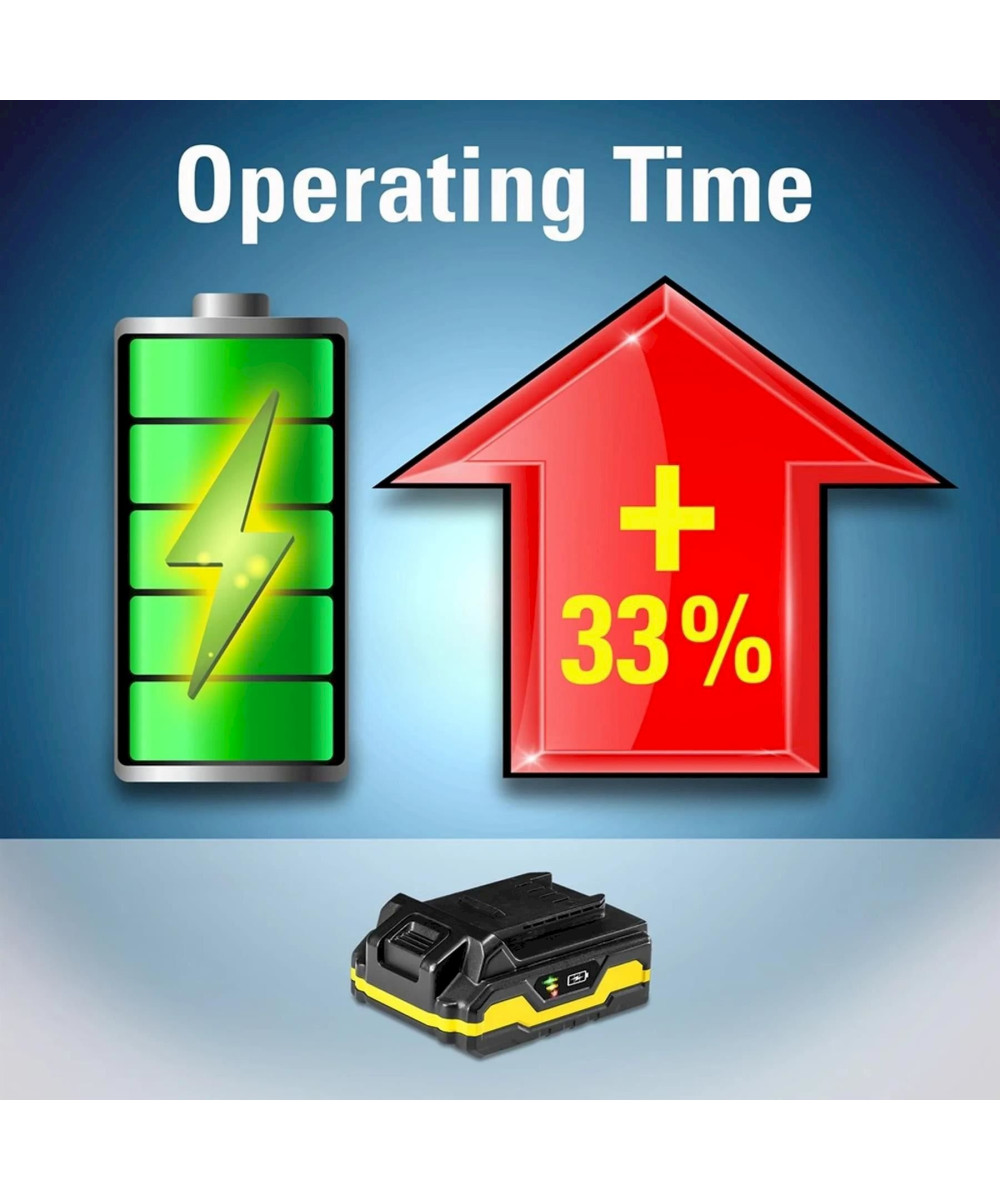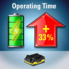 On constate qu'une batterie d'une capacité de 2 Ah permet d'augmenter l'autonomie de l'appareil de 33 % par rapport à une batterie de 1,5 Ah.