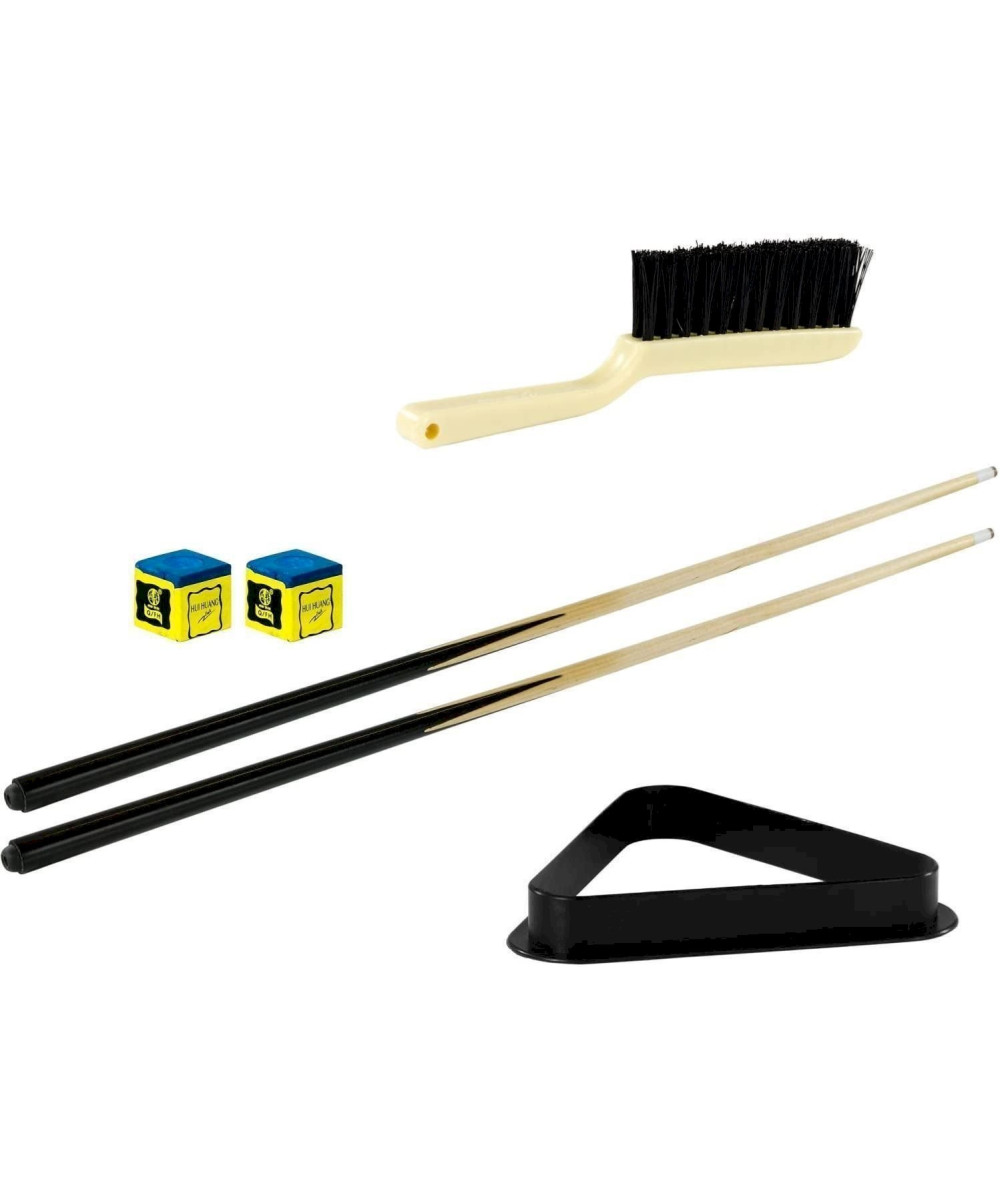 - Tous les accessoires sont inclus : 2x queues de 92 cm, 1x jeu de boules en résine (diamètre 38 mm), 1x craie, 1x brosse, 1x triangle.