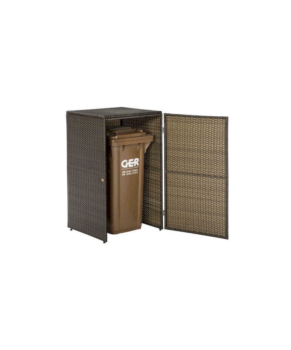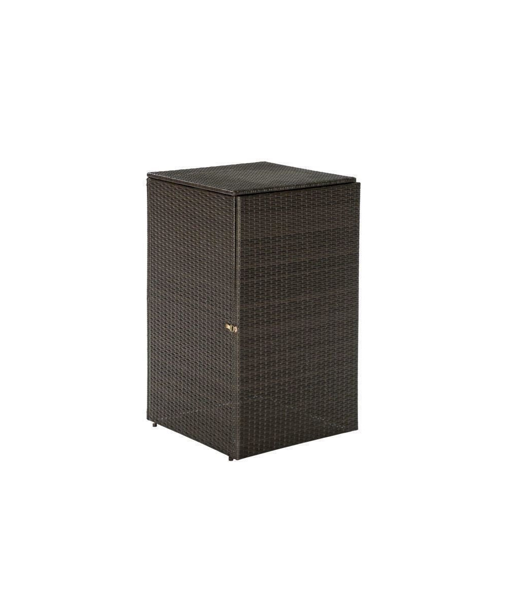 Mülltonnen sind weder vor dem Haus noch im Garten ein ansehnlicher Anblick. Doch es gibt eine einfache Lösung: Mit dieser Mülltonnenabdeckung verstecken Sie die unangenehmen Geruchsbelästigungen gekonnt. Die Abdeckung bietet Platz für eine übliche Mülltonne. Sie besteht aus einem Metallgestell, das von einem ansprechenden Kunststoffgeflecht umhüllt ist. Die Abdeckung kann oben geöffnet werden, was ein einfaches Befüllen der Mülltonnen ermöglicht.