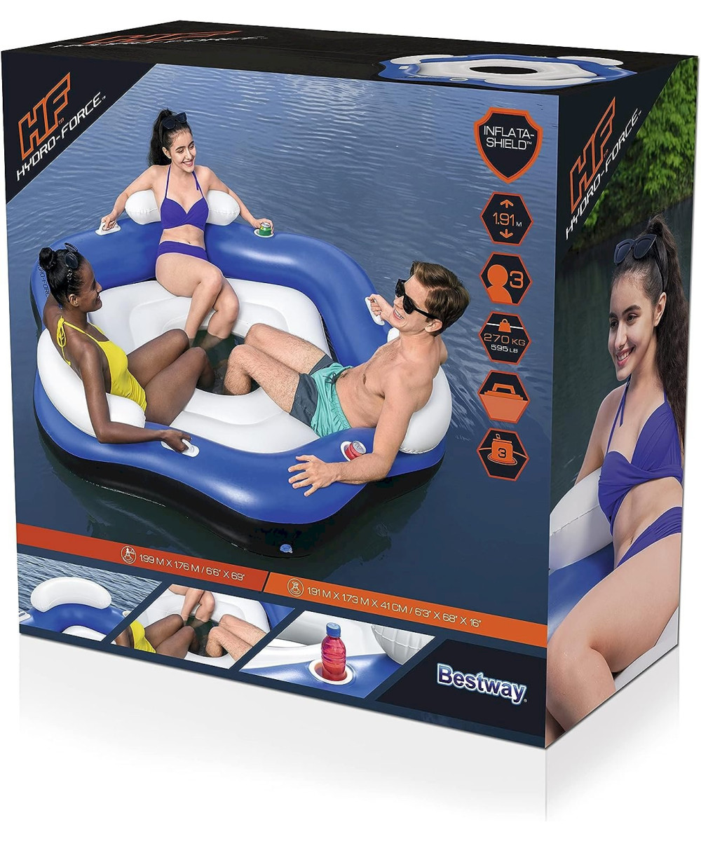 Bestway Hydro-Force 3-Personen -Badeinsel X3 Luftmatratze Schwimmliege Strand 199 x 176 cm