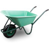 Brouette pratique avec un volume de 100 litres et une charge maximale de 250 kg.