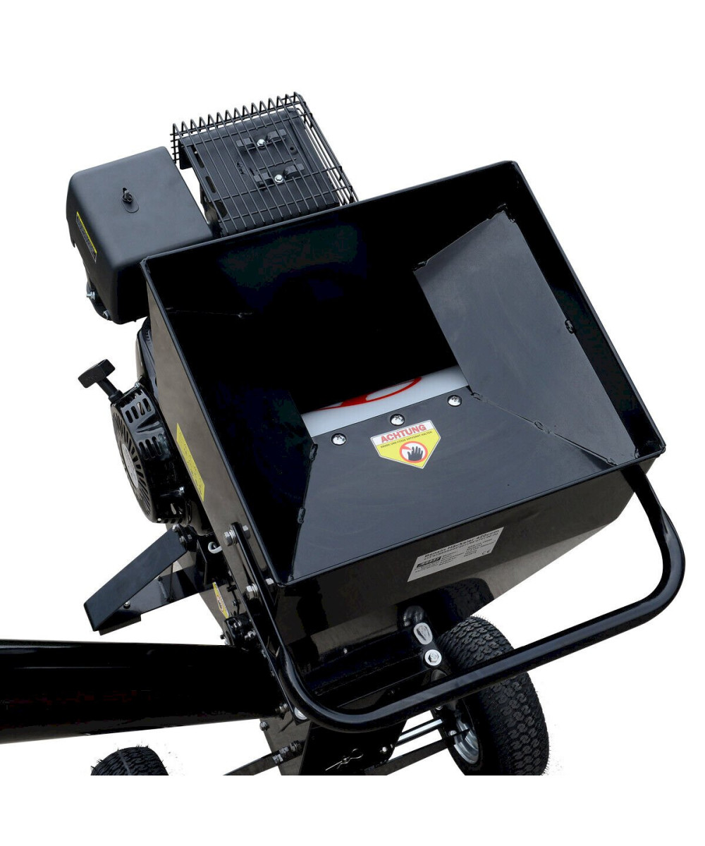 - Extra große 13 Zoll (33cm) und breite, kugelgelagerte Transport-Räder mit Luftbefüllung, um den Häcksler leicht zum Einsatzort zu bringen